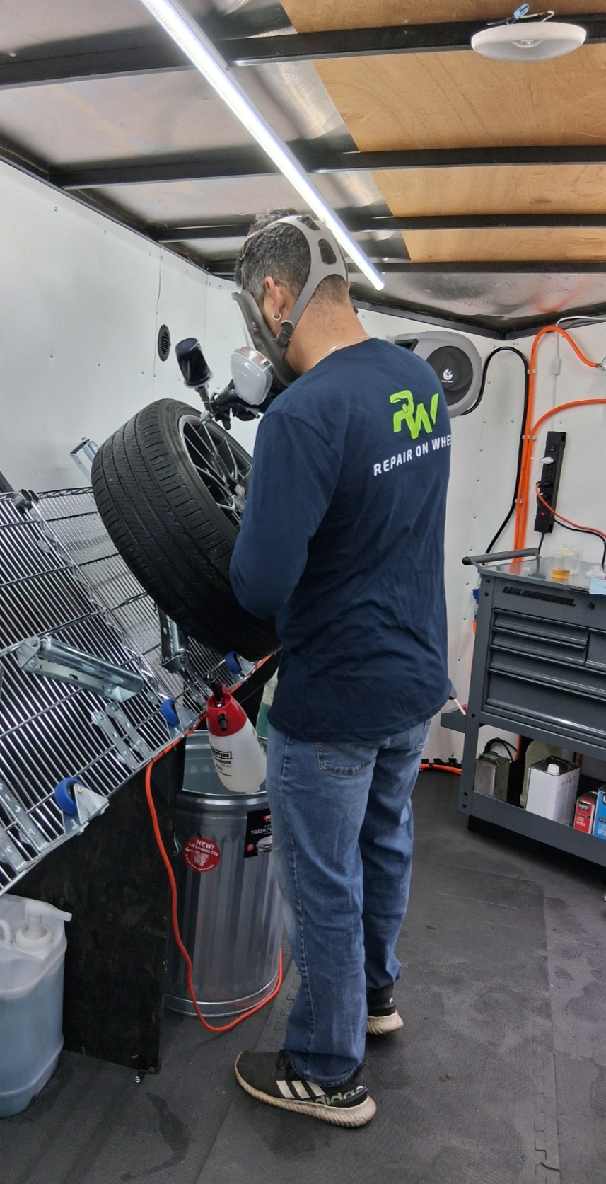 Witness the transformation of damaged wheels into showroom-quality masterpieces. Our mobile repair tech brings precision directly to your location.